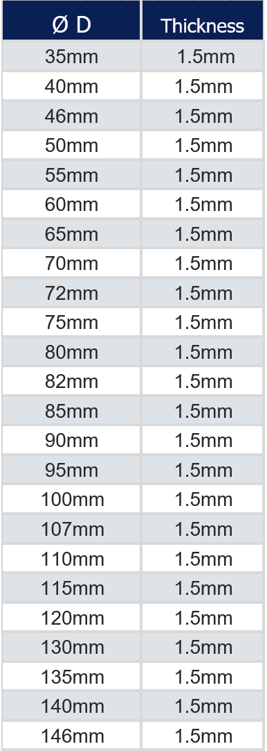 Available optionally as an extra heavy-duty clamp with 25mm width double-band and M8 Allen Socket Bolt. Extra heavy-duty clamp is available only for sizes 90mm and above
