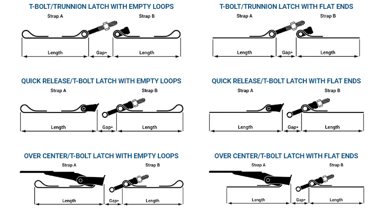 Lengths range from 2.25 in. up to the customer’s desired length. For certain applications, strap assemblies may be joined together to arrive at the required length. Customers specify latch styles, material gauge, band width and hardware. Custom anti-vibration liners can also be affixed to the strap surface, if desired. Invicta India can perform straps to closely match your application, and reduce assembly time during installation.